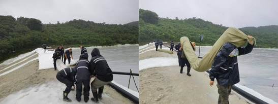 受到连续强降雨和上游来水影响,鸭绿江出现洪水过程,临江街道受灾严重。7月30日,鸭绿江水势趋于平稳,丹东市防汛Ⅱ级应急响应降至防汛Ⅳ应急响应,交通防洪门有序拆除,航道工程局组织干部职工扫污水、除淤泥,全面开展复工复产准备工作。